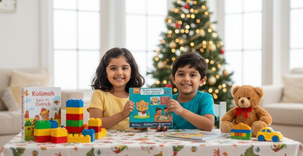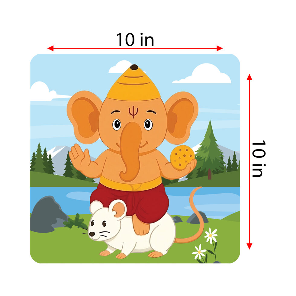 Baby Ganesh 10×10 inch eco-friendly double-sided puzzle board featuring two Vedic-inspired designs. This 36-piece set enhances memory, focus, problem-solving, spatial reasoning, and fine motor skills while introducing cultural elements through screen-free, mindful play. A compact, educational, and culturally rich activity for meaningful learning and fun.