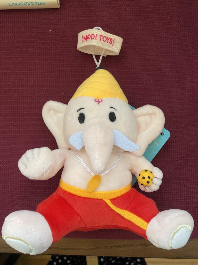 Our whole family is obsessed with all the moditoys plushes! Ganesh has a special place for all of us as we always start anything new with a Ganesh puja! Love the mantras and cultural representation. The Modak Is perfect and such a cute addition! I also Love that I can hang it on the stroller and/or car seat Thank you so much for making these plushes!