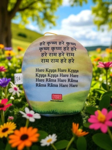On the front, the pillow plush features a flute and a peacock feather affixed at the top. On the back, it features a beautiful design inspired by devotion and love.